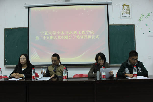 为进一步提高入党积极分子的政治理论水平,强化基本素养,确保新党员的发展质量,2015年10月21日中午12点30分,土木与水利工程学院第二十五期入党积极分子培训班开班仪式在工科楼三楼阶梯教室隆重举行。学办主任郭利老师,团委书记王娜老师、2015级辅导员马小凤老师以及兼职辅导员韩东出席了开班仪式,107名思想认识积极的同学也参加了此次开班仪式。