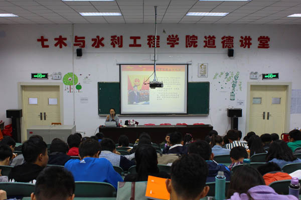 2015年10月21日中午,宁夏大学党委组织部副部长、学生党建办公室主任奥海玮老师在工科楼三阶为我院入党积极分子讲授党课。