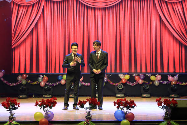学院党委书记马正亮老师首先代表学院致辞,向考入我院的2015级新生表示热烈欢迎。迎新晚会正式开始,整个晚会精彩纷呈,高潮迭起,表演形式丰富,内容新颖。歌舞、相声、小品、手风琴、吉它乐器联奏等精彩的节目为观众呈现了丰盛的视听盛宴。随着强劲的音乐声响起,晚会在马芊菂、马园、张雅姝等演员激情的开场舞《Catch me if you can》中拉开了帷幕。歌伴舞《青花瓷》展示着东方独特的文化神韵,“中国风”旋律响彻全场;而相声《趣谈大学》以诙谐打趣的方式演绎了大一新生心中无限感慨,手风琴合奏奏出了别样美妙的旋律,一支《竹林深处》把观众带入奇幻的世界。一波小高潮后是博士生导师献花环节,感谢多年来孜孜不倦在一线从事教学科研的老师们为学院人才培养、学校发展做出的贡献。