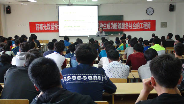 2015年4月22日下午2:30,土木与水利工程学院邀请宁夏回族自治区水利厅教授级高级工程师薛塞光总工程师在宁夏大学C区L楼308教室做了题为《如何从一名大学毕业生成为能够服务社会的工程师》的报告。报告会由毛明杰副院长主持。参加此次报告会的有水利厅科教处江静处长,土水学院水利水电、农业水利工程、交通工程、土木工程等专业的200余名同学以及王红雨教授、李王成、冯克鹏等水利系老师。为本次报告会的顺利举行,土水学院李应海副院长、办公室主任陈艳、学生办工室主任郭利做了大量的会前准备工作。