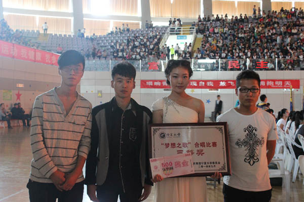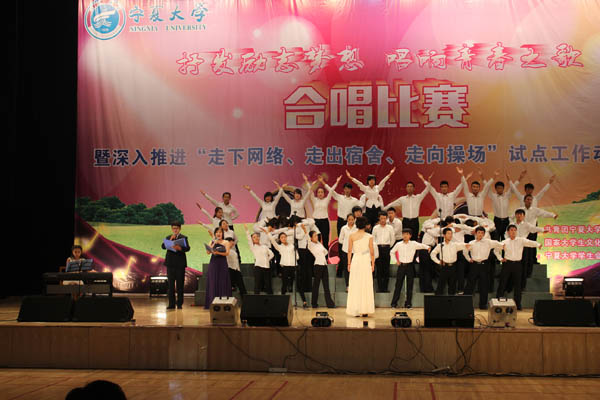 2014年9月24日,由共青团宁夏大学委员会、国家大学生文化素质教育基地办公室主办,宁夏大学学生会承办的以“深入推进大学生‘三走’项目”为主题的“抒发励志梦想,唱响青春之歌”合唱比赛在宁夏大学大学生活动中心举办。