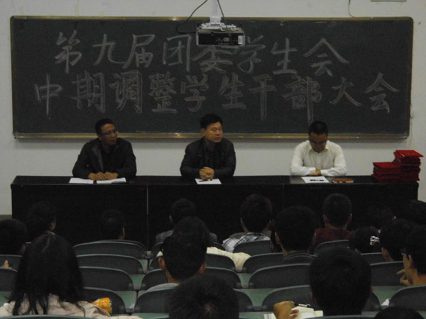10月12日中午,我院在工科楼三阶举行第九届团委学生会学生干部中期调整大会。学院党总支书记马正亮老师、副书记张强老师、学办主任郭利老师出席了此次会议。