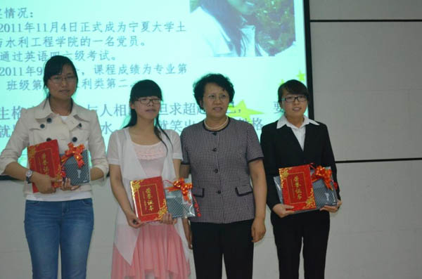 为充分展现土木与水利工程学院学子良好风貌、引导青年大学生刻苦学习、锐意进取,培养更多、更好的素质过硬、能力出众、道德高尚的高质量人才。学院于5月23日在文科楼一楼报告厅举办以“传递青春正能量 奋发有为成栋梁”为主题的第一届“土水之星”颁奖典礼。宁夏大学党委副书记赵利宁,纪委书记孔斌,院长田军仓,党总支副书记王德全、张强,副院长尹娟、毛明杰、李应海等领导出席了颁奖典礼。