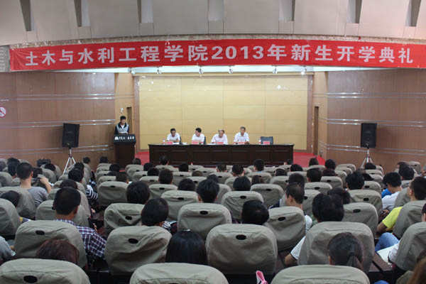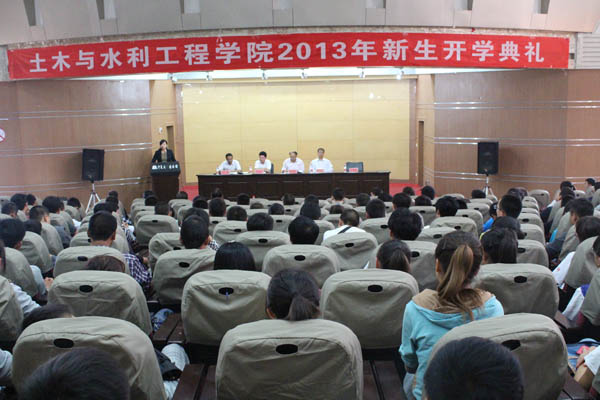 金秋送爽,又是一个收获的季节,土木与水利工程学院迎来了2013级本科新生。9月9日下午,我院在B区图书馆报告厅举办了2013级新生开学典礼。田军仓院长、马正亮书记、崔自治副院长、各系系主任、三办一中心主任和2013级各班班主任及全体新生参加了开学典礼。典礼由张强副书记主持。
