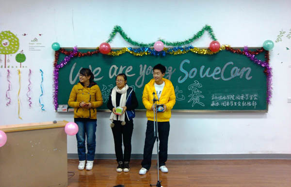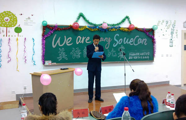 2012年11月21日下午4:30,我院在工科楼第三阶梯教室举办了以“We are young so we can”为主题的英语朗诵比赛。本次比赛特别邀请到外国语学院郭晓燕老师、赵静老师、李天紫老师和我院团委书记叶新才老师及12级辅导员马姣老师担任大赛评委。本次大赛由来自外国语学院12级林娇同学和我院12级石丹平同学主持。
