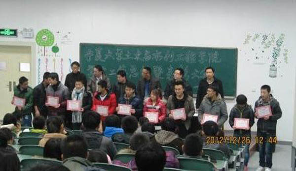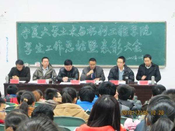 2012年12月26日下午,土水学院在工科楼第三阶梯教室隆重举行了“土木与水利工程学院2012年度学生工作总结暨表彰大会”。我院党总支书记马正亮老师,副书记王德全老师、张强老师,全体辅导员老师及团委学生会干部、各班班委出席了此次大会。会议由党总支副书记张强老师主持。