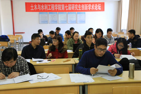 2015年11月25日,我院第七届“研究生创新学术论坛” 在C区工科楼和“L”楼举行。副校长田军仓,副院长毛明杰、崔自治、尹娟、各学科负责人、研究生导师及全体研究生参加了此次创新学术论坛。