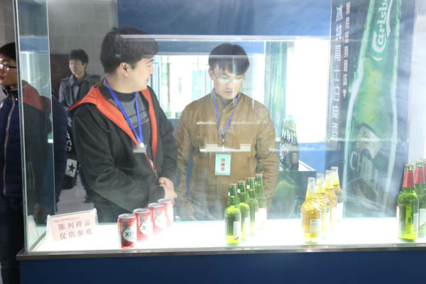 企业事务部代晓翔部长对宁夏大学的师生进行简单培训后,在酿造经理赵庆川的引导下参观了西夏啤酒厂的酿造工程车间,赵庆川经理展示讲解了啤酒生产发酵、糊化、糖化、过滤、杀菌、洗瓶、装酒、压盖、验酒、贴标、装箱的工艺流程,对世界领先的生产设备及企业文化进行了介绍,在参观5S过滤车间时,同学们也亲身体会到啤酒过滤的乐趣。随后,我们在代部长的带领下,参观了啤酒的生产及包装车间,庞大的流水线让同学们叹为观止。在企业内部的酒吧品酒过程中,人力资源部的王娟经理又给我们讲述了嘉士伯企业关于用人招聘的相关知识,告诉同学们要提早进行职业生涯的规划,引发了同学们的广泛参与和讨论。