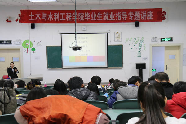 2015年11月23日中午,土木与水利工程学院邀请到新华百货人力资源部部长于涛为毕业生进行就业方法与技巧方面的专题培训,讲座由2012级年级主任冯克鹏主持。