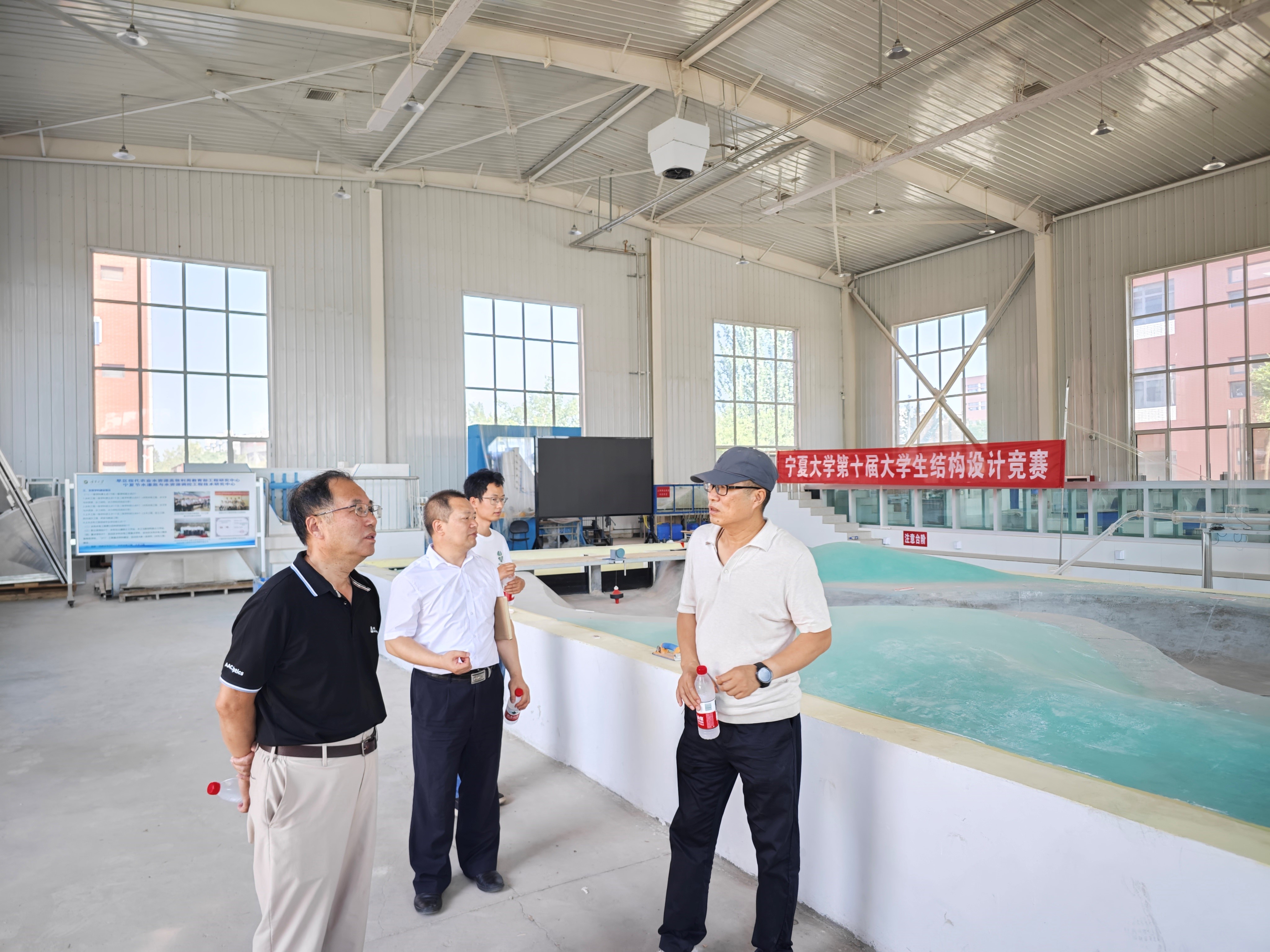 座谈会后,黄修桥教授先后参观了宁夏节水灌溉与水资源调控工程技术中心水文遥感与灌区智慧水利实验室、学院水利结构大厅。工程中心主任冯克鹏教授详细汇报了团队在盐碱地智能灌排协同调控领域的技术突破与应用成效,水利结构大厅负责人闫新房重点介绍了实验大厅的建设历程、教学科研融合模式及依托该平台取得的系列标志性成果。黄修桥教授对学院在灌区水文模拟、智慧水利技术研发等方面的创新成果给予高度认可,强调未来应聚焦西北地区农业特色,持续强化农业水利工程领域的成果转化与应用。