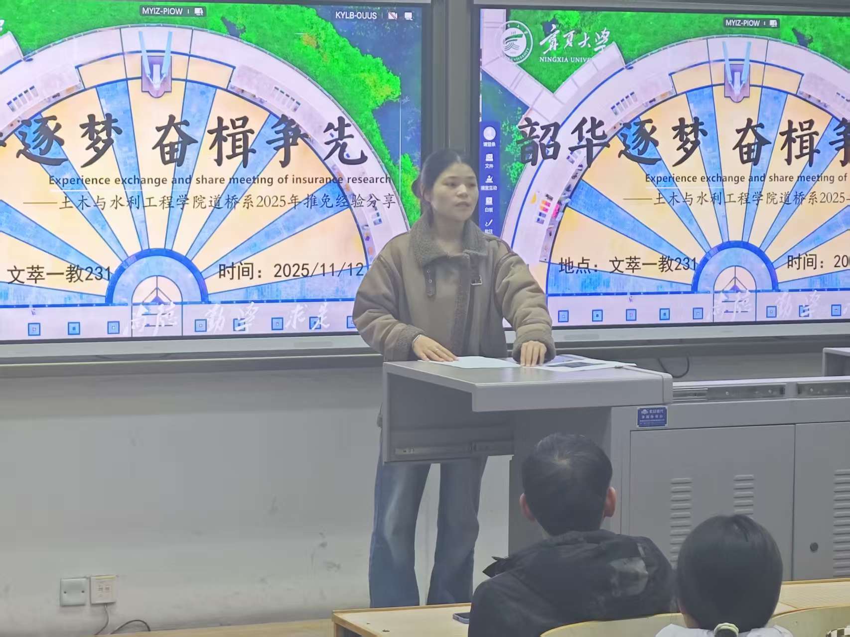 为帮助本科生深入了解保研政策、掌握高效学习方法、积累竞赛经验,11月12日,土木与水利工程学院道路桥梁与渡河工程系成功举办了“韶华逐梦,奋楫争先”保研经验交流分享会。会议由道桥系袁化强、景明海老师主持,特邀2022级道路桥梁与渡河工程专业曾天赐、赵涛、姚明杰,以及工程管理专业李霜四位成功保研的学长学姐进行分享。活动吸引了本系70余名本科生积极参与。