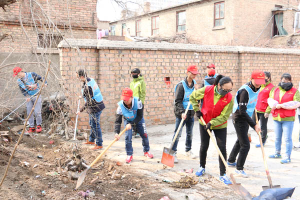 2016年3月25日下午,土木与水利工程学院社团实践部学生协同西夏区志愿者在北京西路开展街道环境治理活动。