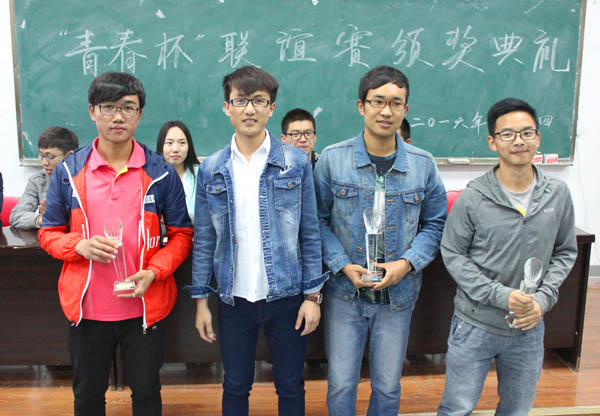 2016年4月14日中午,宁夏大学文萃校区“青春杯”足球、篮球联谊赛颁奖典礼在工科楼三阶隆重举行。土木与水利工程学院团委书记王娜、土木与水利工程学院学生会主席王充、化学化工学院学生会主席马宗鹏、生命科学学院学生会主席曹梦飞、体育学院学生会主席张澜、国防生代表池游洲以及各学院运动员代表参加了此次颁奖典礼。