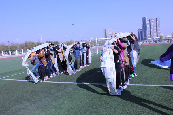 活动的第二项名为“无敌风火轮”各个小组用报纸和胶带制成自己的战车,载着小组的所有成员前进,这个活动考验的就是小组成员步伐的一致性,只有团结一致,步调一致,才能完成比赛,最终,“良辰队”在次赢得了比赛,通过比赛,教练和参赛者共同讨论了团结的重要性,大家也都受益颇深。