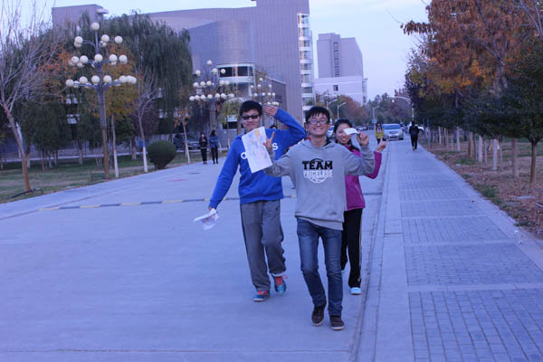 最后一项“5公里寻宝”可谓趣味十足,但也十分艰苦。天气虽然寒冷,然而每个参赛成员都满脸汗水,但是因为每个人身上都背负着团队的荣誉,这些早已不是他们所在乎的了。下午5点20分,各个小组陆续回到C区操场,5公里的拉练,坚持下来,真是一场华美的邂逅。