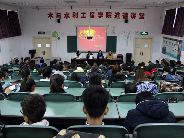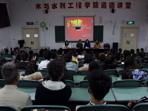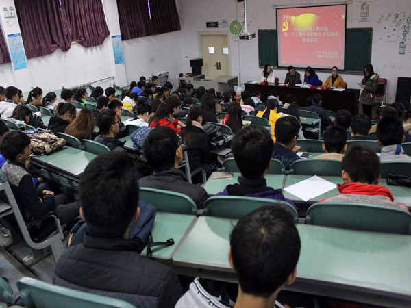 2016年11月23日,第二十七期入党积极分子结班仪式在宁夏大学文萃校区工科楼三阶隆重召开。土木与水利工程学院学办主任郭利主持仪式。党委副书记柳松洁、团委书记王娜、16级辅导员陶雪梅及第二十七期全体入党积极分子参加了此次仪式。整个会场秩序井然,全场气氛庄重严肃。