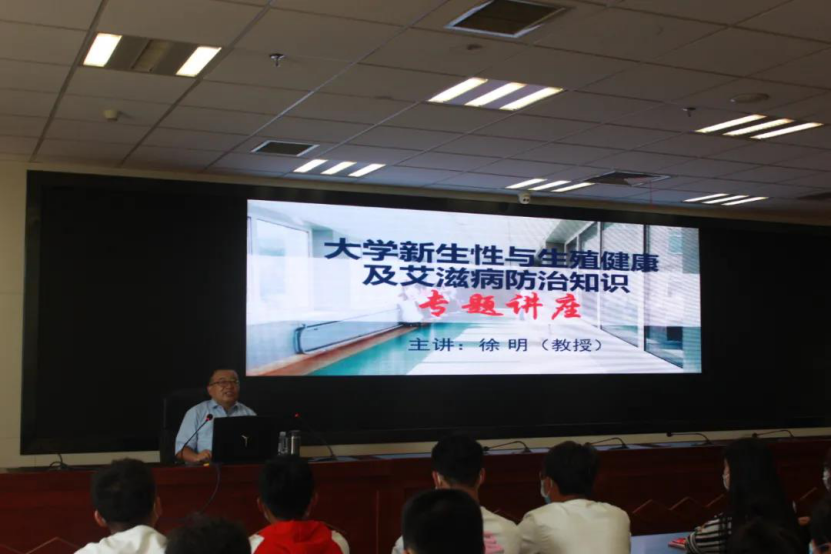 徐明为新生讲述青少年生殖健康状态,并通过吹气球的游戏来向新生讲述成长。他指出并强调性安全是一个不容忽视的问题,由此引申介绍安全性行为,还为学生讲解了艾滋病的预防。