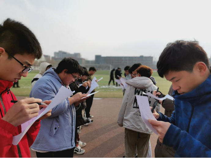 继上个游戏的激情正旺,各宿舍迅速做好了本轮游戏的准备,本轮游戏考验同学们的反应能力,是一个交由每位同学自由发挥的“送分游戏”。经过充分的准备后比赛开始,每个人都表现出力争第一的决心。比赛期间,同学因失误遗憾下场后依旧兴致高昂地围观比赛的情况,并时不时爆发出一阵笑声。整个操场都弥漫着快乐的气息。